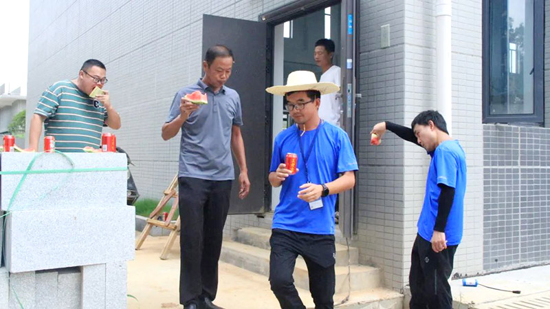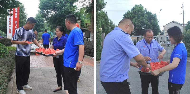 7月28日,波隆水務(wù)集團(tuán)管理層為冒高溫、戰(zhàn)酷暑的生產(chǎn)一線職工送去公司的關(guān)懷與慰問。