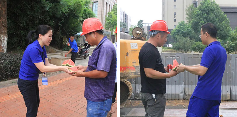 7月28日,波隆水務(wù)集團(tuán)管理層為冒高溫、戰(zhàn)酷暑的生產(chǎn)一線職工送去公司的關(guān)懷與慰問。